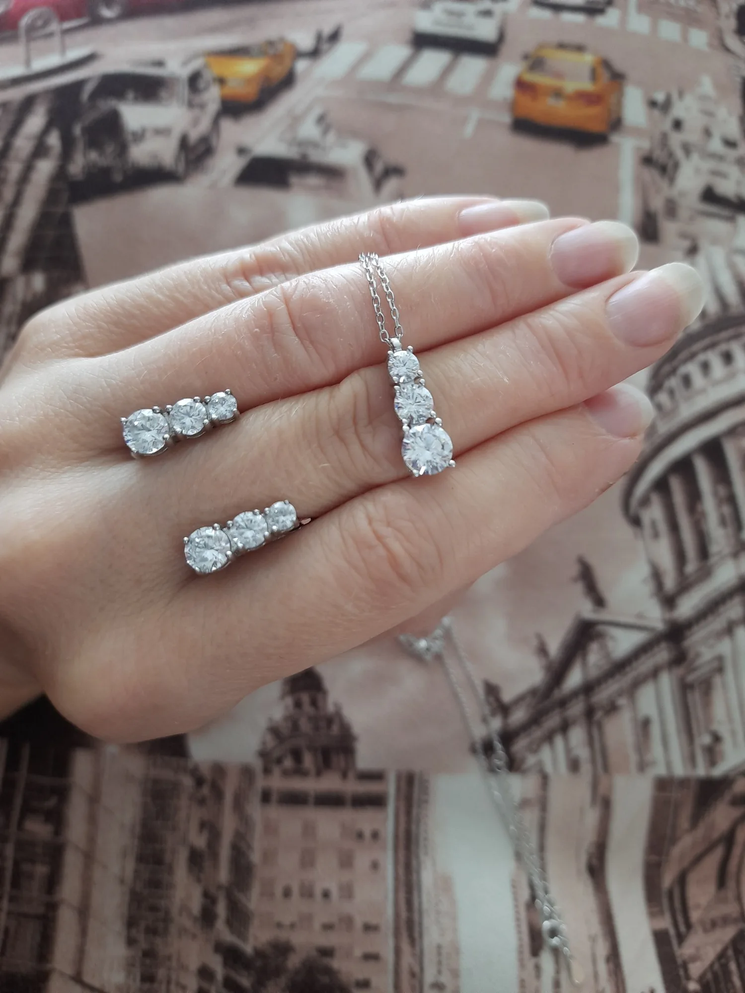 Elevate your elegance with our 1.8 Carat Moissanite 3-Stone Necklace, meticulously crafted from 925 sterling silver plated with 18K white gold and protected with a premium AF film for lasting brilliance. Featuring three D-color, VVS1 clarity Moissanite stones (4mm, 5mm, 6.5mm) set in a stunning 8-heart 8-arrow cut, this necklace exudes timeless sophistication. Perfect for anniversaries, birthdays, weddings, or as a luxurious gift, this piece combines high-end craftsmanship with modern elegance.