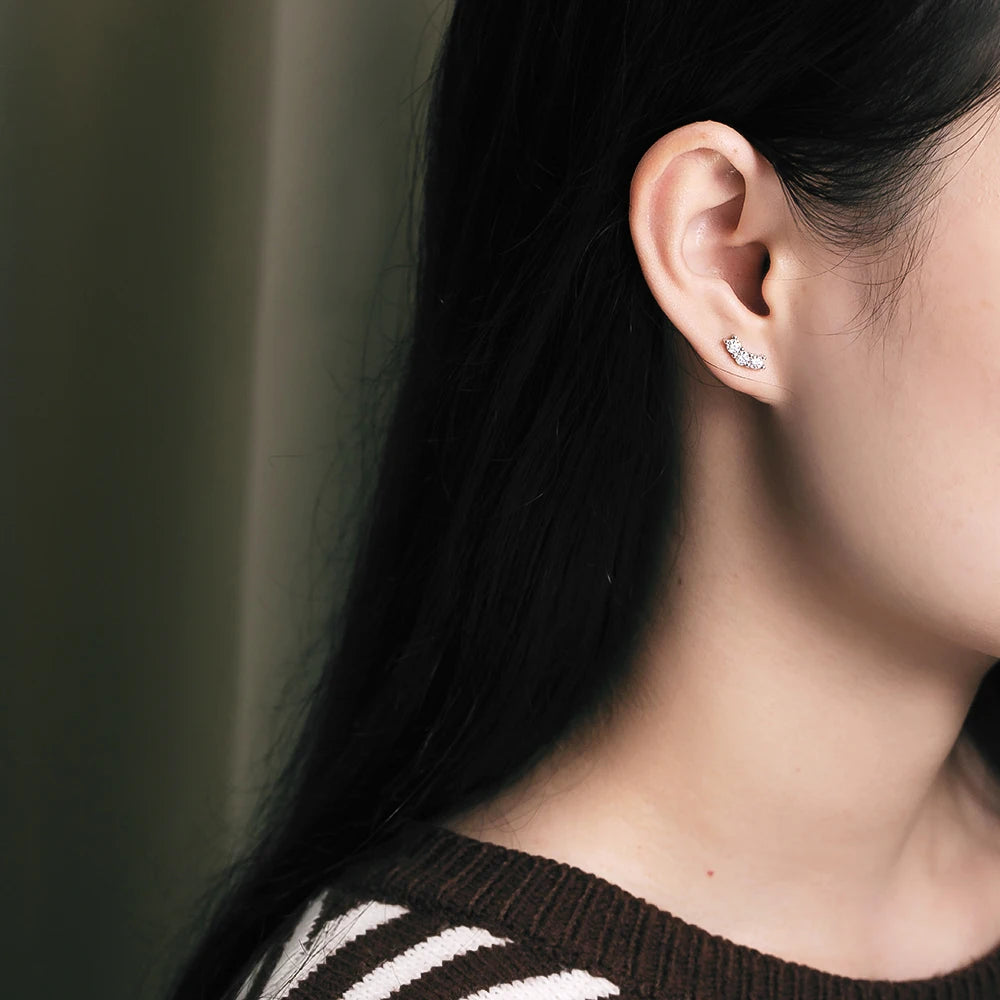 Elevate any look with these 3-Stone Moissanite Stud Earrings, a perfect blend of luxury, sparkle, and timeless elegance. Crafted from 100% 925 sterling silver and plated in 18K white gold with AF protective film, each earring features D color, VVS1 clarity moissanite stones, cut with excellent brilliance and 8 hearts & 8 arrows symmetry. With 3mm stones totaling 0.6ct (6 stones per pair), these studs radiate diamond-like fire from every angle.